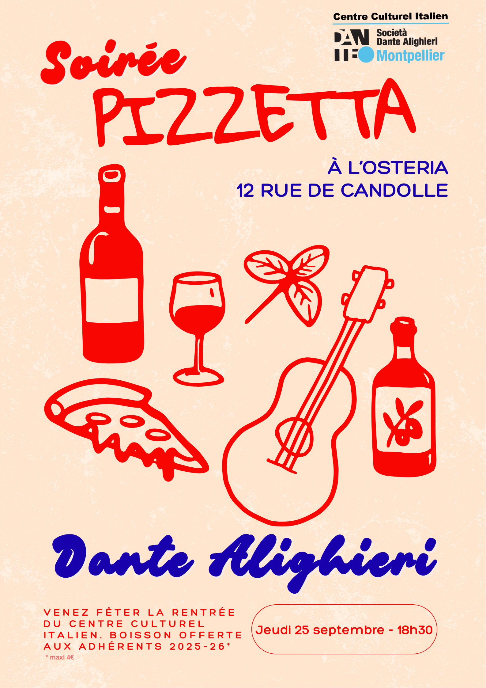 • Jeudi 25 septembre 18h30 – Soirée Pizzetta à L’Osteria