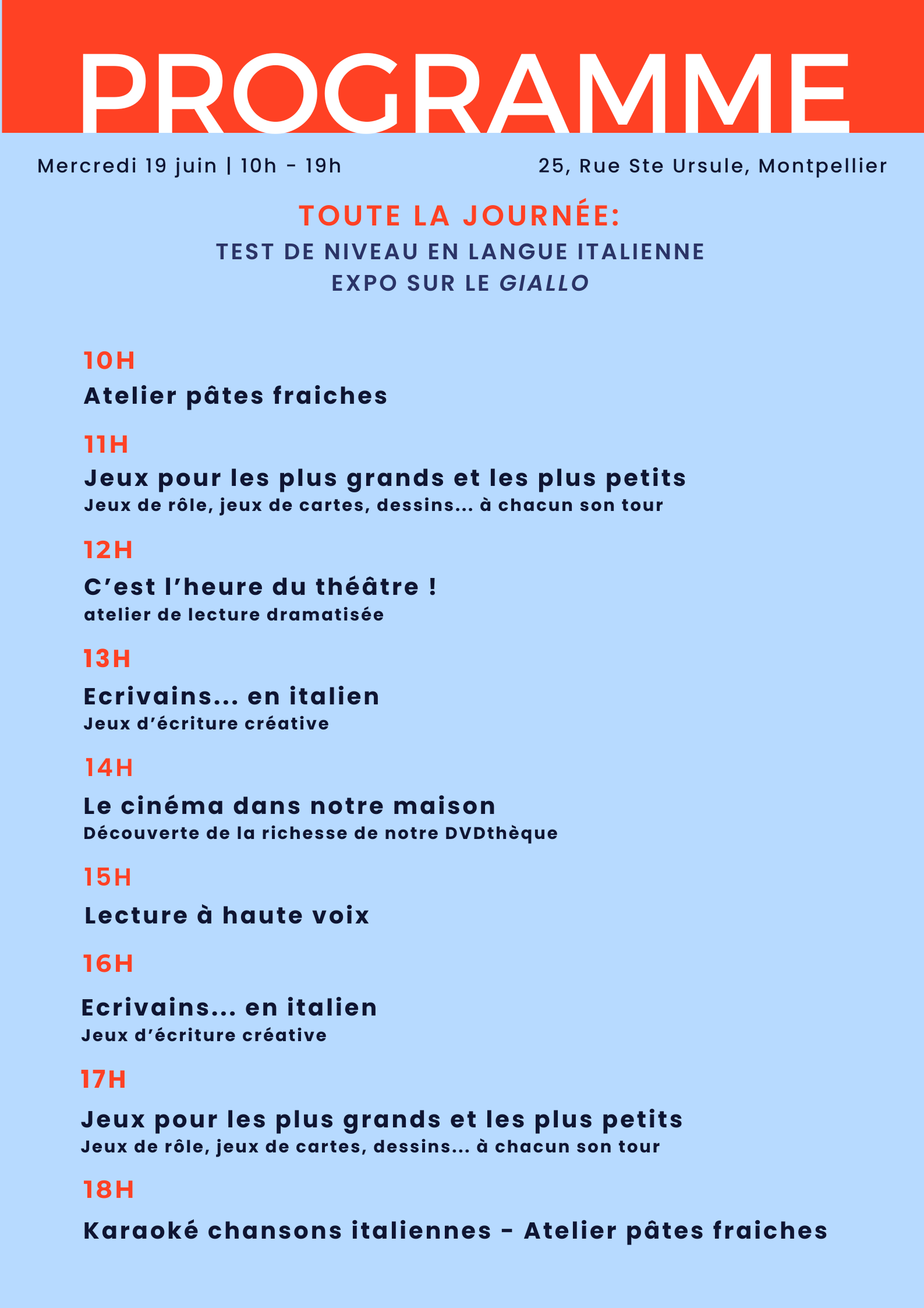 Où ? au Centre Culturel Italien Dante Alighieri, 25 rue Ste Ursule.